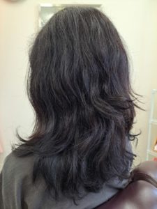 当店オリジナルカラーメニューをし、最後に最新メニュー「kagayaki」をされ、サラツヤ髪になりました。